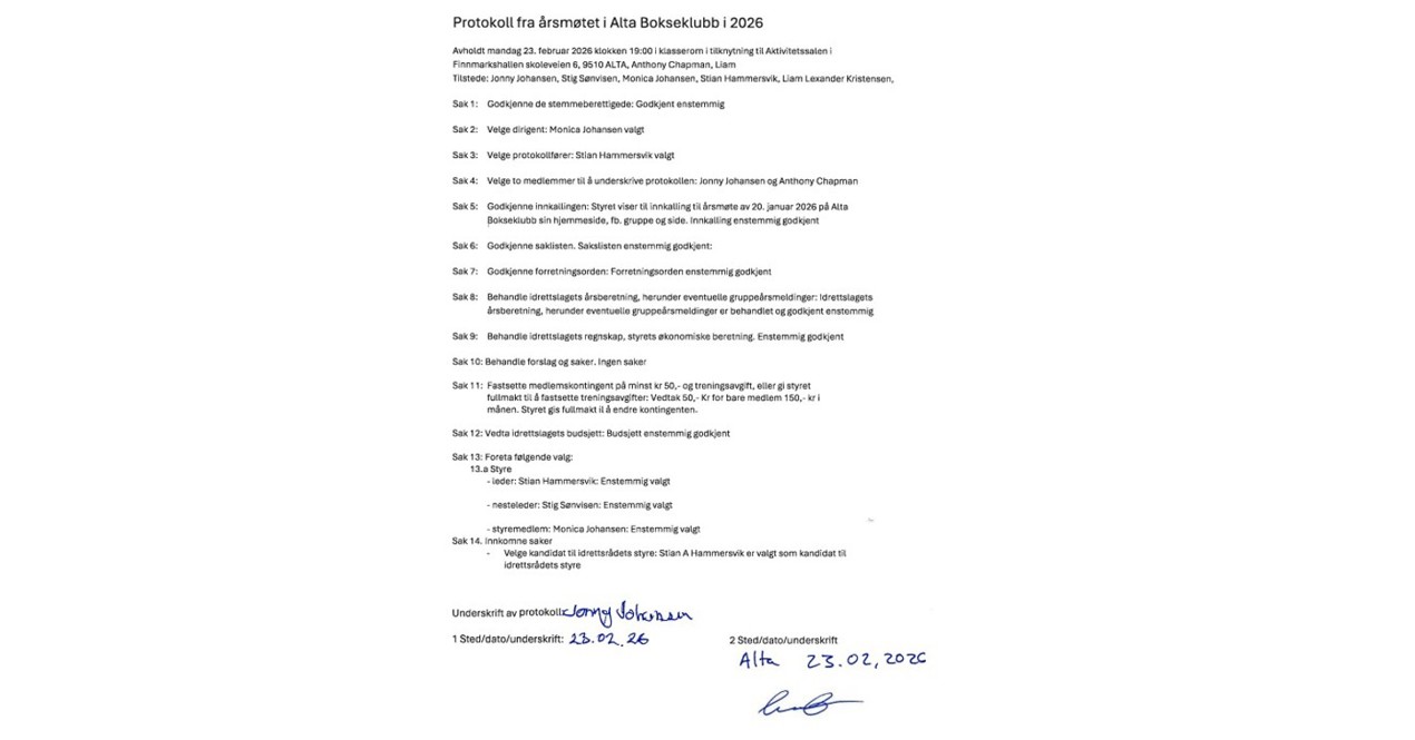 Signert årsmøteprotokoll